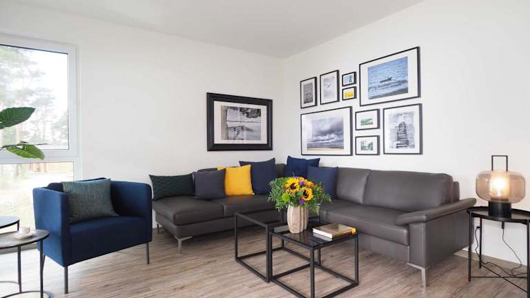 Die Ferienwohnung umfasst zwei Schlafzimmer, ein Wohnzimmer, einen Flachbild-TV und eine gut ausgestattete Küche mit Kühlschrank und Geschirrspüler. Zusätzlich sind zwei Badezimmer mit Dusche vorhanden. Einige der Zimmer sind schallisoliert und allergikerfreundlich.