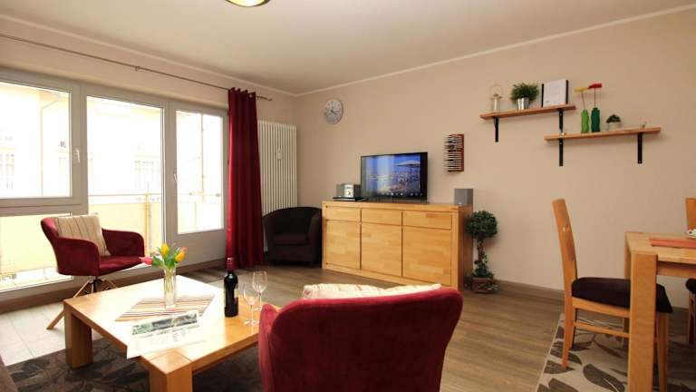 Die Appartementanlage bietet eine komfortable Unterkunft mit einem Balkon, zwei Schlafzimmern und einem Wohnzimmer. Die Wohnung ist gut ausgestattet und legt Wert auf eine Nichtraucherumgebung, in der keine Feiern wie Junggesellenabschiede erlaubt sind. Der Mindestalter für den Check-in beträgt 18 Jahre. Haustiere sind nicht gestattet.