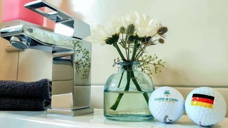 Die Appartements an der Golfanlage bieten komfortable Wohneinheiten mit einer voll ausgestatteten Küchenzeile, einem Esstisch und einem eigenen Badezimmer. Jede Wohneinheit verfügt über einen Flachbild-Sat-TV und kostenfreies WLAN, so dass die Gäste sich auch im Urlaub wie zu Hause fühlen können. Zur Ausstattung gehören auch ein Kühlschrank, ein Kochfeld, ein Toaster, eine Kaffeemaschine und ein Wasserkocher, um den Gästen alle Annehmlichkeiten zu bieten, die sie für einen angenehmen Aufenthalt benötigen.