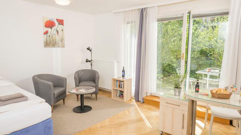 Wir sind für Sie jeden Tag vor Ort und freuen uns, wenn wir Ihnen ihren Aufenthalt bei uns so komfortabel wie möglich gestalten können. Wir haben auch allerhand Informationen rund um Wien, Stadtpläne, Veranstaltungsprogramme und vieles mehr für Sie gratis erhältlich. Wenn wir also die Möglichkeit haben, Ihren Aufenthalt noch angenehmer zu machen, wenden Sie sich einfach an unser Team. Egal ob Sie eine Theaterkarte, ein Abholservice vom Flughafen oder einfach nur einen Tipp für ein gutes Abendessen benötigen. Wir stehen für all Ihre Fragen jederzeit zur Verfügung. Für Ihr Auto stehen übrigens Parkmöglichkeiten gegen Gebühr in der hauseigenen Garage zur Verfügung solange Plätze frei sind.