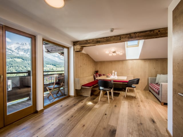 Unsere im Frühjahr 2017 vollständig renovierten Appartements in unserem 2024 thermisch sanierten und umgestalteten Haus bieten Ihnen im Urlaub ein Zuhause zum Wohlfühlen für die ganze Familie. Alle Räume wurden generalsaniert und sind nun neu eingerichtet – modern aber traditionsbewusst. Sitzen Sie gemütlich zusammen an den Eckbänken, die Sie in allen Wohnbereichen vorfinden. Echtholzparkett in allen Schlafzimmern verströmt angenehmen Duft und lässt Sie entspannt schlafen. Unsere Bäder sind mit hochwertigen und umweltschonenden Duschen und WC ausgestattet. In sämtlichen Küchen finden Sie für maximalen Komfort auch einen Geschirrspüler und eine Mikrowelle vor. Jedes Appartement verfügt zudem über einen Balkon mit wunderschönem Ausblick. Im ganzen Haus haben Sie auch Zugang zu unserem schnellen und kostenlosen WLAN. Unseren Gästen stehen ein Fitnessraum und ein Kinderspielraum sowie ein Skikeller kostenlos zur Verfügung. Im Sommer können Sie auch einen Tennisplatz (ca. 150m entfernt) ohne Aufpreis benützen. Für jedes Appartement ist ein Parkplatz vorhanden, für E-Autos bieten wir eine Wallbox zum schnellen Aufladen an (Typ 2 mit 11kw, Kabel vorhanden). Der Hubenhof liegt direkt im Ortszentrum. In nächster Nähe finden Sie zahlreiche Restaurants und Einkaufsmöglichkeiten. Die nächsten Skilifte, Skischulen und Loipen erreichen Sie ebenso mühelos zu Fuß wie den örtlichen Kinderspielplatz und den Golfplatz. Auch viele schöne Wanderungen können Sie ohne Auto direkt vom Haus weg starten. Der kostenlose Skibus und der KaiserJet-Wanderbus halten zudem gleich neben dem Haus. Wir freuen uns, Sie als unsere Gäste willkommen zu heißen! Hannes Leitner und das Hubenhof-Team