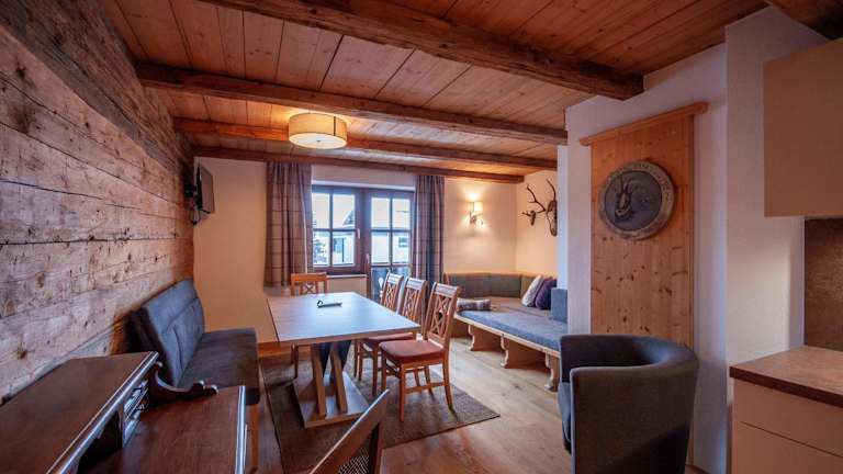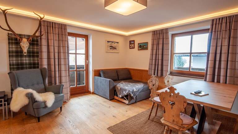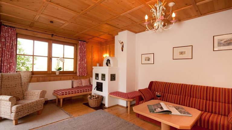Nach einem Tag mit Wandern, Skifahren oder Fahrradfahren können die Gäste in der Gemeinschaftslounge entspannen.