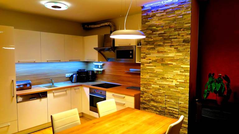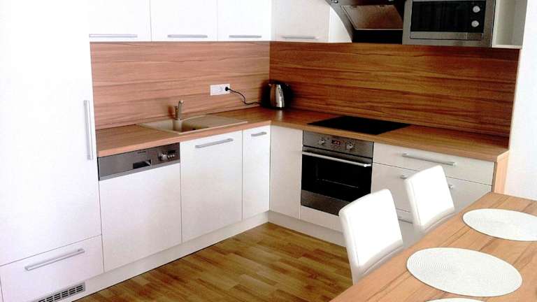 Die Appartements verfügen über einen Sitzbereich und einen Satelliten Flachbild-TV. Eine voll ausgestattete Küche mit Kühlschrank, Geschirrspüler, Ofen, Mikrowelle, Herdplatte, Kaffeemaschine und Wasserkocher ist ebenfalls vorhanden. Ein eigenes Badezimmer mit Dusche und Haartrockner ergänzt die Ausstattung der Unterkünfte.