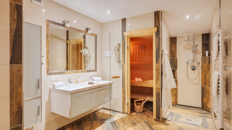 Alle unsere Zimmer und Appartments bieten 1 bis 3 Schlafzimmer, 1 oder 2 Badezimmer, Wohnzimmer mit Sitzecke und Kachelofen, Flat TV, Balkon, kostenloses Wlan im gesamten Gebäude. Unser Penthouseapartment bieten einen private Spa mit Sauna und eigener Sonnenterrasse.