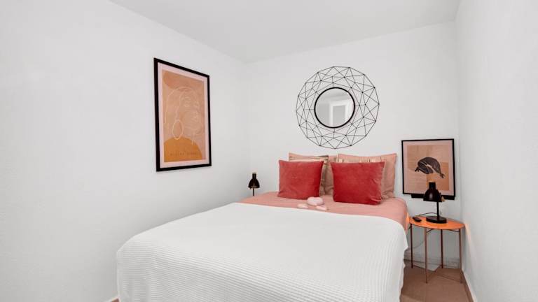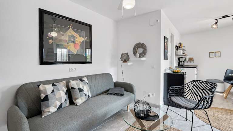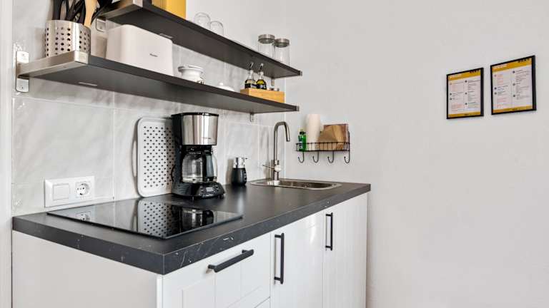 Die Ferienwohnung besteht aus einem Schlafzimmer, einem Wohnzimmer und einer voll ausgestatteten Küche. Zur Ausstattung der Küche gehören ein Kühlschrank und eine Kaffeemaschine. Das Badezimmer ist mit einer Dusche sowie kostenlosen Pflegeprodukten ausgestattet. Handtücher und Bettwäsche werden zur Verfügung gestellt.