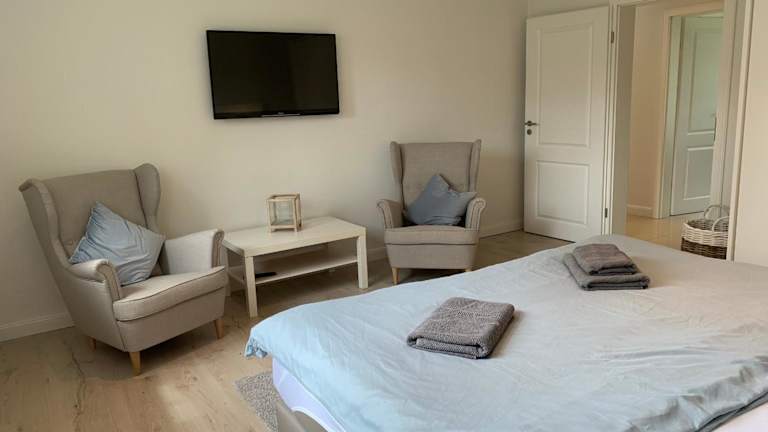 Die Ferienwohnung verfügt über 3 Schlafzimmer, eine Küche mit Kühlschrank und Geschirrspüler sowie 2 Badezimmer mit Dusche, Haartrockner und Waschmaschine. Ein TV ist ebenfalls vorhanden. Die Unterkunft ist als Nichtraucherunterkunft konzipiert, wobei alle öffentlichen und privaten Bereiche Nichtraucherzonen sind.