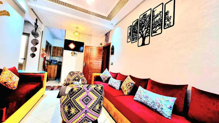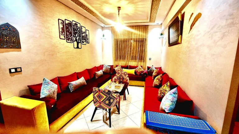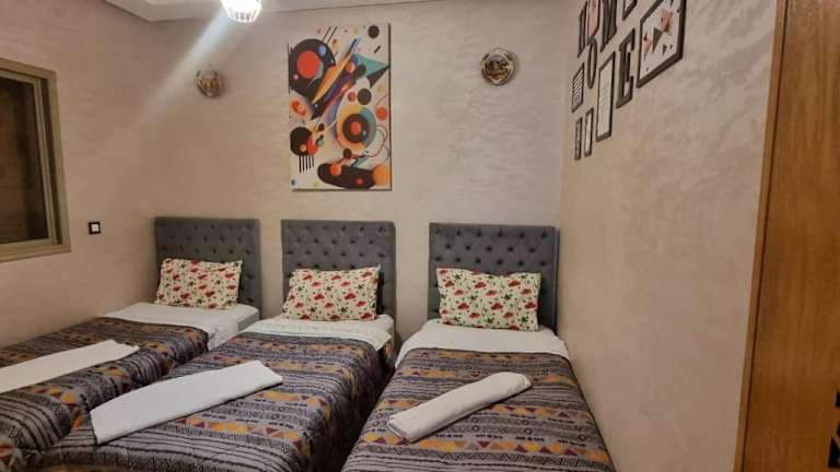 Apprt Ennakhil 3 bietet Übernachtungsmöglichkeiten direkt am Strand. Die Unterkunft umfasst einen Garten, eine Terrasse sowie kostenfreies WLAN. Es handelt sich um eine Ferienwohnung, die über zwei Schlafzimmer und ein Wohnzimmer verfügt.