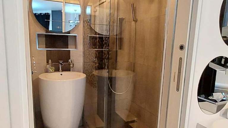 Die Ferienwohnung umfasst 1 Schlafzimmer, ein Wohnzimmer und 1 Badezimmer mit Dusche und Whirlpool. Handtücher und Bettwäsche werden gestellt.