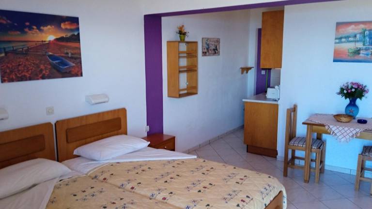 Die Apsedes Studios sind zur Selbstverpflegung ausgelegt, so dass Sie die Freiheit haben, Ihre eigenen Mahlzeiten zuzubereiten. In der gut ausgestatteten Küchenzeile finden Sie alles, was Sie dazu benötigen. Alternativ können Sie auch die Grillmöglichkeiten nutzen und ein gemütliches Barbecue auf der Sonnenterrasse genießen.