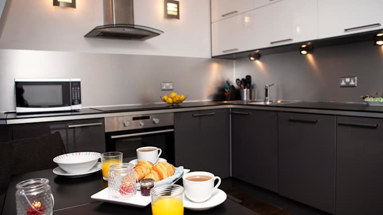 In unmittelbarer Nähe des Apartments finden Sie eine Vielzahl von Restaurants und Cafés, in denen Sie lokale und internationale Küche genießen können. Von traditionellen britischen Gerichten bis hin zu exotischen Aromen aus aller Welt ist für jeden Geschmack etwas dabei. Sie können auch die voll ausgestattete Küche im Apartment nutzen, um Ihre eigenen Mahlzeiten zuzubereiten.