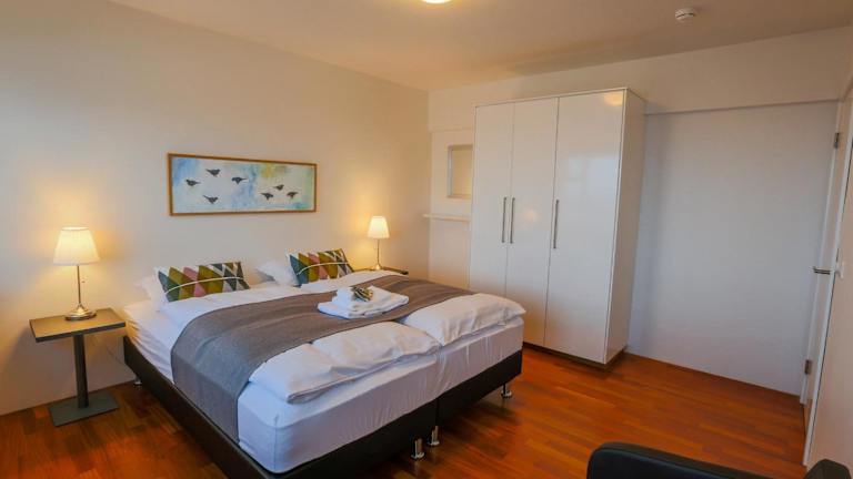 Die Apartments im Apt. Hotel Hjalteyri sind modern und komfortabel eingerichtet und verfügen über einen Flachbild-TV und ein eigenes Badezimmer. Hier können Sie sich nach einem erlebnisreichen Tag entspannen und zur Ruhe kommen. Das Highlight ist das Penthouse-Apartment, das mit einer privaten Sonnenterrasse ausgestattet ist und einen atemberaubenden Rundumblick auf die Berge und das Meer bietet.