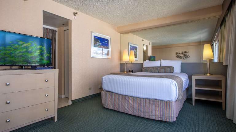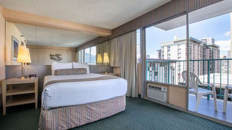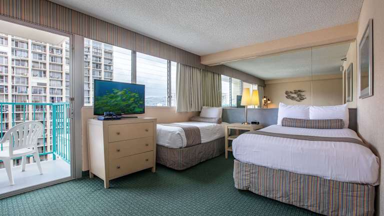 Das Hotel bietet 163 Nichtraucherzimmer auf 16 Etagen, die bequem mit dem Aufzug erreichbar sind. Zur Ausstattung gehören ein Flachbild-TV und ein DVD-Filmverleih. Die Deluxe und Superior Zimmer verfügen über einen eigenen Balkon. Eine Mikrowelle, ein Minikühlschrank und eine Kaffeemaschine mit hawaiianischem Kaffee sind ebenfalls vorhanden.