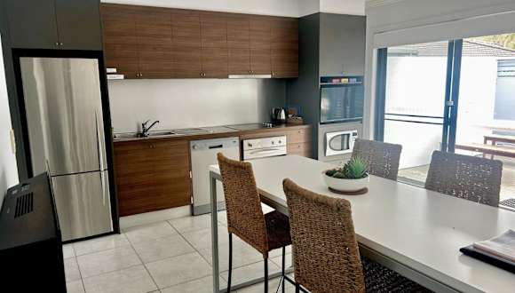 Die Unterkunft umfasst eine voll ausgestattete Küche mit Kühlschrank, Geschirrspüler, Waschmaschine, Ofen und Mikrowelle. Zudem ist ein Grill vorhanden.