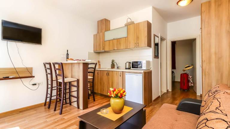 Die Aqua Breeze Apartments in Budva bieten eine komfortable Unterkunft nur 800 m vom Strand Mogren entfernt. Mit kostenfreiem WLAN und Parkplätzen vor Ort sind sie ideal für einen entspannten Aufenthalt. Die Zimmer sind klimatisiert und verfügen über ein eigenes Bad sowie einen Flachbild-Sat-TV. Die Lage der Apartments ist perfekt für einen Besuch des Aqua Park Budva, des TQ Plaza und der Discoteque Trocadero Budva. Der Strand Jaz und das malerische Sveti Stefan sind ebenfalls in der Nähe.