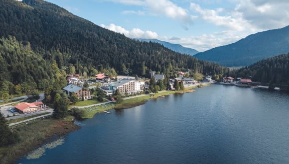 Arabella Alpenhotel am Spitzingsee in Bayern Verbringen Sie Ihren Urlaub mitten in den bayrischen Alpen direkt am Spitzingsee. Es erwartet Sie ein 4-Sterne-Superior Hotel am Ende der Straße. Genießen Sie den Luxus und die Stille der umliegenden Bergwelt. Tauchen Sie ein und vergessen Sie Ihren Alltag. - 120 Zimmer und Suiten mit Berg- oder Seeblick - 2 Restaurants, König Ludwig Stube und Osteria L´Olivia - reichhaltiges Frühstück - Spitzing Alm am See mit bayrischer Küche und Kinderspielplatz - Wellness im AlpenSpa mit Soletherme, 3 Saunen, Dampfbad, neuem Ruhe- und Fitnessraum - eigene Seeliegewiese mit Steg, Liegen und Sonnenschirme - Liegewiese am Pool mit Daybeds - Lademöglichkeiten für E-Autos - kostenfreies WLAN - Ski- und Fahrradkeller - 5 Minuten zu den Bergbahnen und dem Skigebiet - Zahlreiche Sportmöglichkeiten direkt vor Ort. Wandern, Radfahren, Schwimmen, Skifahren, Langlaufen und vieles mehr. Wir freuen uns Sie, hier oben am Spitzingsee, 70 km südlich von München auf 1.100 m Höhe begrüßen zu dürfen.
