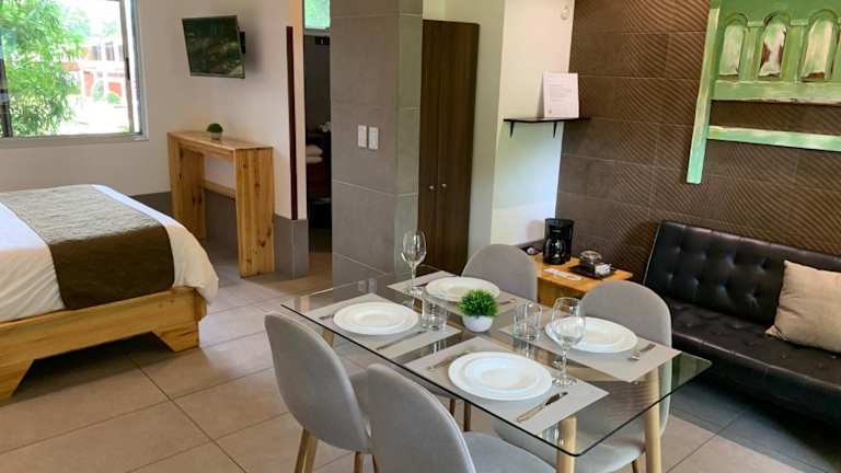 Das ARANJUEZ LOFTS Santa Ana in Santa Ana bietet seinen Gästen einen erholsamen Aufenthalt in einer ruhigen Umgebung. Genießen Sie den Außenpool, den Garten und die Terrasse und profitieren Sie von den Privatparkplätzen und dem kostenfreien WLAN. Das Apartment verfügt über ein gemütliches Schlafzimmer, ein Badezimmer und ein Wohnzimmer. Eine Autovermietung ist ebenfalls vorhanden. Die Lage des Hotels ermöglicht es Ihnen, leicht Escazu, San José und Alajuela zu erreichen.