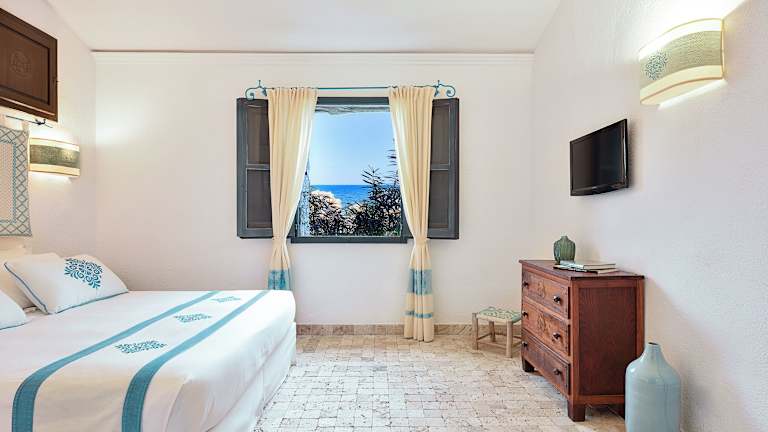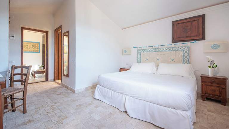Die 254 Zimmer im Borgo Cala Moresca bieten die Wahl zwischen allen Zimmertypen im Bellavista Naturpark. Sehen Sie sich alle unsere Zimmertypen an und buchen Sie das gewünschte Zimmer für Ihren einzigartigen Aufenthalt zum besten Onlinepreis. DOPPELZIMMERN Die doppelzimmern im Borgo Cala Moresca wurden nach den alten Techniken der sardischen Handwerker gebaut und bieten einen herrlichen Blick auf die wunderschöne Landschaft. Sie sind mit Klimaanlage, Fernseher, Minibar, Safe und einem Bad mit Pflegeprodukten ausgestattet. SUPERIOR-DOPPELZIMMER In den Superior-Doppelzimmern im Borgo Cala Moresca können Sie jede Minute Ihres Aufenthalts auf Sardinien bei höchstem Komfort auskosten. Sie werden von ihrem charakteristischen Stil und der hübschen Terrasse begeistert sein. JUNIOR SUITE Die Junior Suiten Borgo Cala Moresca sind die richtige Wahl für anspruchsvolle Reisende. Purer Komfort, verteilt auf einem Schlafzimmer, einem Wohnzimmer mit zwei Schlafsofas und zwei Badezimmern mit Pflegeprodukten. Darüber hinaus sind diese Suiten mit Klimaanlage, Fernseher, Minibar, und Safe ausgestattet. SUITE Die Suite von Borgo Cala Moresca sind für Familien gedacht, die ein paar Tage voller Luxus in Arbatax, Sardinien, verbringen möchten. Es ist ein Zimmer mit Klimaanlage, Fernseher, Minibar, Safe und eigenem Bad mit Toilettenartikeln. SUITE SUPERIOR Die Suiete Superior ist unser exklusivstes Angebot, um Sardinien auf andere Art zu erleben. Sie bietet Platz für maximal 4 Erwachsene und 2 Kinder und steht für Genuss und Distinguiertheit. Sie ist für Gäste gedacht, die besondere Unterbringung mit mehr Platz und mehr Aufmerksamkeiten wünschen.