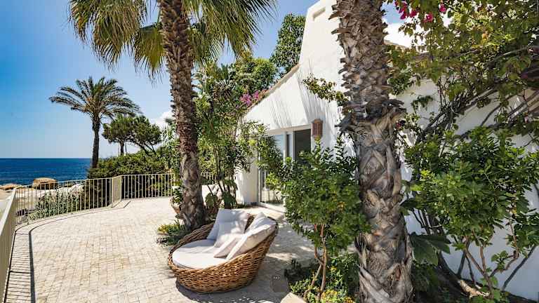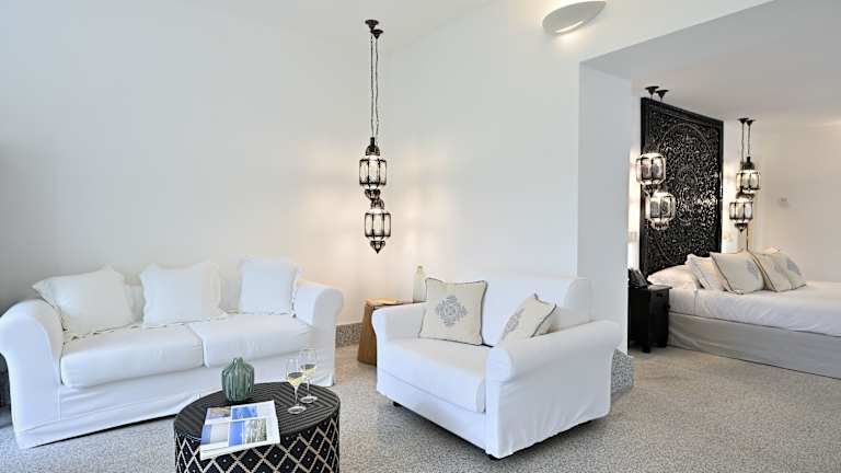 Die Suiten sind Nichtraucherzimmer, mit einem Mindestalter von 18 Jahren pro Zimmer. Sie sind etwa 60 m² groß und bieten einen atemberaubenden Meerblick. Jede Suite verfügt über ein kombiniertes Wohn-/Schlafzimmer mit zwei Doppelbetten, Klimaanlage, Fußbodenheizung, Safe, Kühlschrank, Nespressomaschine, Wasserkocher, Minibar und WLAN. Das Badezimmer ist mit einer Badewanne oder Dusche und Regendusche ausgestattet. Eine Terrasse mit Liegestühlen und Sitzgelegenheit sowie ein Privatgarten gehören ebenfalls zur Ausstattung.