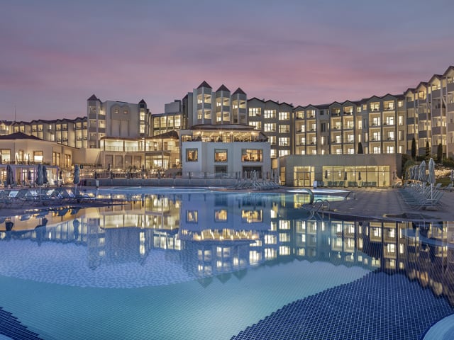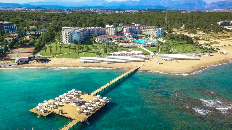 Das Arcanus Hotels Sorgun, das eine perfekte Lage hat, wo sich Grün und Blau treffen, ist 70 km vom Flughafen Antalya, nur 4 km von der historischen antiken Stadt Side und 4 km vom Stadtzentrum von Manavgat entfernt. Auf einem 80.000 Quadratmeter großen Grundstück gelegen, verfügt die Anlage mit ihrem 250 Meter langen und 50 Meter breiten Kieselsandstrand über einen der einzigartigen Strände der Region Side. Es beherbergt auch einen Pier, wo Sie die Sonne in vollen Zügen genießen können, und einen wunderschönen Pool mit 7 Rutschen, wo Sie angenehme Momente verbringen können.
