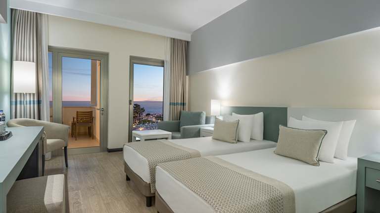 Am Morgen wachen Sie mit einem wunderschönen Blick auf das Meer oder den Pinienwald auf. Hier können Sie dem Alltagsstress entfliehen, Ihren Urlaub genießen und entspannen. Das Arcanus Hotels Sorgun verfügt über 463 Zimmer, die alle im Jahr 2023 mit Blick auf Ihren Komfort renoviert wurden. Die Standardzimmer sind 28 m² groß und verfügen über 1 Doppelbett oder zwei getrennte Betten und ein Einzelschlafsofa. Parkettboden, Dusche, Balkon, Minibar, Wasserkocher, Föhn, zentrale Klimaanlage (wetterabhängig), SAT-TV, Direktwahltelefon, sind im Zimmer vorhanden. Zimmersafe und Internetzugang werden kostenlos zur Verfügung gestellt. Familienzimmer mit Etagenbetten sind 28 m2 groß und verfügen über 1 Doppelbett oder zwei getrennte Betten und Etagenbetten. Das Zimmer verfügt über Parkettboden, Dusche, Balkon, Minibar, Wasserkocher, zentrale Klimaanlage, Sat-TV. Zimmersafe und Internetservice werden ebenfalls kostenlos zur Verfügung gestellt. Familien-Suite-Zimmer Die bestehen aus 3 Kategorien Deluxe Familien Suite Zimmer Mit Meerblick, ein Wohnzimmer mit Küchenzeile, zwei Schlafzimmer und zwei Badezimmer (mit Duschkabine). Im ersten Schlafzimmer befindet sich ein französisches Bett, im zweiten Schlafzimmer zwei Einzelbetten und ein ausklappbarer Schlafsessel Superior Familien Suite Zimmer Mit Meerblick oder seitlichem Meerblick, zwei Schlafzimmern und zwei Badezimmern (mit Duschkabine). Es gibt eine Verbindungstür zwischen den Zimmern. Im ersten Schlafzimmer befindet sich ein französisches Bett, im zweiten Schlafzimmer belinden sich zwei Einzelbetten und ein ausklappbarer Schlafsessel. Familien Suite Zimmer Mit Meerblick, zwei Schlafzimmer, ein Whirpool und ein Badezimmer (mit Duschkabine). Im ersten Schlafzimmer befindet sich ein französisches Bett und Im zweiten Schlafzimmer befinden sich zwei Einzelbetten. Alle Zimmer haben ein Balkon und sind mit Laminatboden, Minibar,Kaffee / Tee Set Wasserkocher, LCD TV, Telefon, Wi-fi zentral gesteuerter Klimaanlage für Heizung / Kühlung (stundenweise, wetterbedingt), Safe, Badezimmer (Duschkabine), Kosmetikspiegel, Haartrockner, hausschuhe und Strom mit 220V ausgestatte