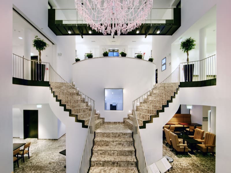 168 Zimmer und Suiten Internetzugang (highspeed) im gesamten Hotel 6 Konferenzräume mit rund 330 m² Gesamtfläche Restaurant BAR SCALA Garage mit 34 Parkplätzen und weiteren 10 Außenstellplätzen (kostenpflichtig, EUR 23,00 für 24 Stunden)