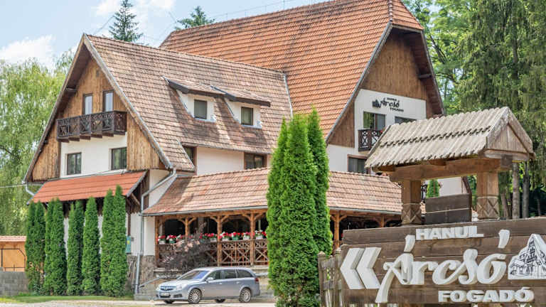 Das Hotel Arcso Fogado liegt in Corund, nur 19 km vom See Ursu entfernt. Die Umgebung ist von Natur umgeben und bietet eine ruhige Atmosphäre für einen erholsamen Aufenthalt. Die Lage des Hotels ermöglicht es den Gästen, die malerische Landschaft zu erkunden und Aktivitäten wie Wandern oder Radfahren zu unternehmen. Der Flughafen Târgu Mureş ist etwa 76 km entfernt und gut erreichbar.