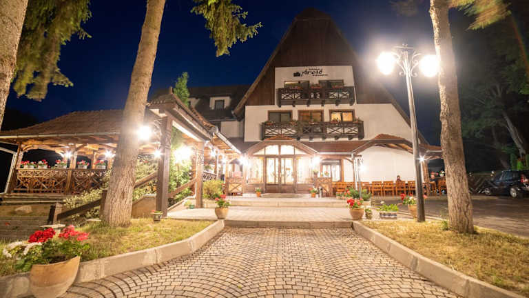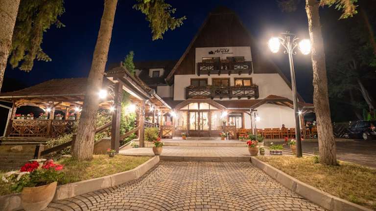 Verbringen Sie Ihren Aufenthalt im Hotel Arcso Fogado in Corund und genießen Sie die ruhige Atmosphäre und die malerische Umgebung. Die Unterkunft bietet komfortable Zimmer mit kostenfreiem WLAN und einer Terrasse mit Blick auf den Garten oder die Berge. Nutzen Sie die kostenlosen Privatparkplätze und erkunden Sie die nahegelegenen Attraktionen wie den See Ursu. Der Flughafen Târgu Mureş ist ebenfalls gut erreichbar.