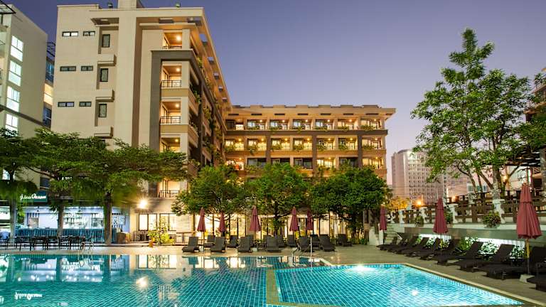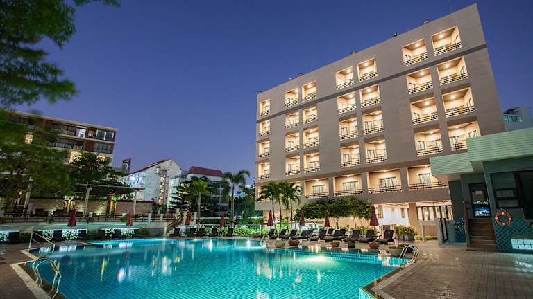 Das moderne Areca Lodge Hotel in Pattaya City beeindruckt mit seinem stilvollen Design und tropischen Gärten. Nur einen kurzen Spaziergang vom Strand entfernt, bietet es seinen Gästen zwei Außenpools und kostenfreies WLAN. Die geschmackvoll eingerichteten Zimmer verfügen über private Balkone und bieten alle Annehmlichkeiten für einen angenehmen Aufenthalt. Entspannen Sie im Spa, trainieren Sie im Fitnesscenter oder genießen Sie eine Mahlzeit in einem der Restaurants. Das Hotel bietet auch einen Schönheitssalon, einen Wäscheservice und einen Flughafentransfer.
