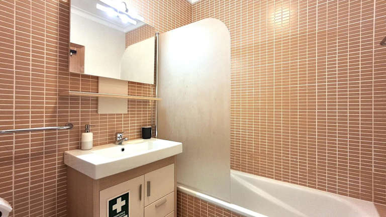 Das Apartment verfügt über ein Schlafzimmer, ein Wohnzimmer sowie eine voll ausgestattete Küche mit Kühlschrank und Kaffeemaschine. Das Badezimmer ist mit einem Bidet und einem Haartrockner ausgestattet. Auf Anfrage können Handtücher und Bettwäsche gegen Aufpreis zur Verfügung gestellt werden. Die Unterkunft ist klimatisiert und bietet WLAN-Zugang.