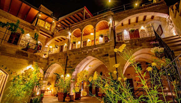 Das Aren Cave Hotel in Göreme ist ein familiengeführtes Hotel im Zentrum der Stadt. Es bietet klimatisierte Zimmer, kostenfreies WLAN und kostenlose Privatparkplätze. Die Lage ist ideal, da der Aussichtspunkt für Sonnenuntergänge, der Busbahnhof, Geschäfte, Cafés, Banken und Restaurants zu Fuß erreichbar sind. Die Zimmer sind schallisoliert und verfügen über Steinmauern, Heizung, einen Wasserkocher und einen TV. Einige Zimmer bieten auch einen gemütlichen Sitzbereich. Traditionelle Details wie Kelims und Keramikfliesen sorgen für ein authentisches Ambiente. Genießen Sie ein Frühstück mit Bergblick auf der Gemeinschaftsterrasse. Das Hotel bietet einen kostenlosen Shuttleservice vom Busbahnhof zur Unterkunft. Darüber hinaus können Sie Fahrräder und Autos mieten, um die Umgebung zu erkunden. Kapadokya ist 3,5 km entfernt, Ürgüp 7 km und der Flughafen Nevşehir Kapadokya 29 km.