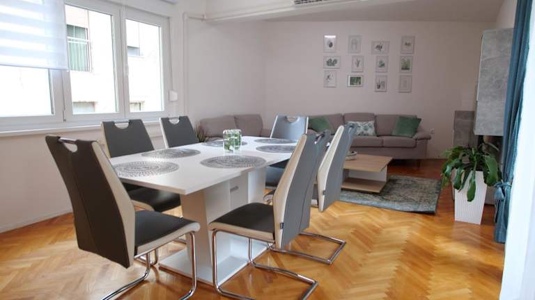 Das Arena apartment with 3 bedrooms in the city center bietet modernes Wohnen mit kostenlosem WLAN und Klimaanlage. Es handelt sich um eine Ferienwohnung, die ideal für Familien oder Gruppen geeignet ist.