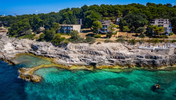 Das Verudela Beach Resort liegt idyllisch direkt am Strand, nur durch die Uferpromenade getrennt, auf einer Halbinsel in Pula. Die Umgebung bietet eine malerische Kulisse mit atemberaubendem Panoramablick auf das Meer und ist von einem Wald umgeben. Das Zentrum von Pula mit seinen Sehenswürdigkeiten, Einkaufsmöglichkeiten und Unterhaltungsmöglichkeiten ist etwa 4 km entfernt. Der Flughafen Pula ist nach knapp 13 km erreichbar.