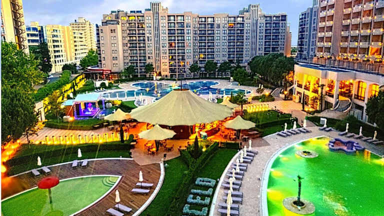 Die Unterkunft befindet sich in Sonnenstrand, im Stadtteil Chaika, direkt an einem Strandabschnitt. In der Umgebung sind zahlreiche interessante Freizeitmöglichkeiten wie der Strand Sunny Beach sowie die Wasserparks Action AquaPark und Wasserpark Kuban zu finden. Der Flughafen Burgas liegt 30 km entfernt, und ein kostenpflichtiger Flughafentransfer wird angeboten.
