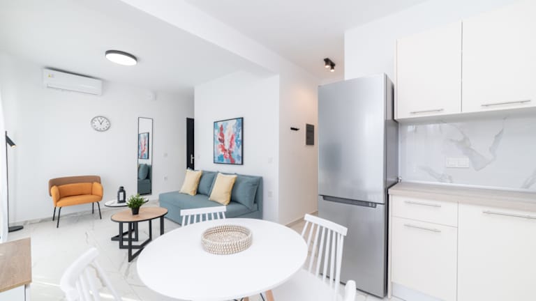 Eine vollständig ausgestattete Einzimmerwohnung, entweder im Erdgeschoss mit einer kleinen Terrasse. Eine vollständig ausgestattete Wohnung mit zwei separaten Schlafzimmern im Erdgeschoss.