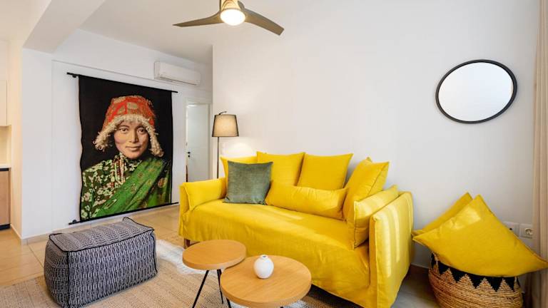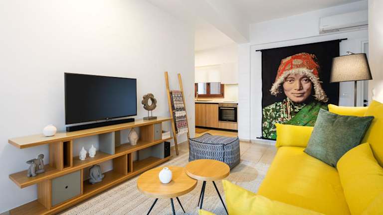 Das klimatisierte Apartment im Aretousa InCreteble Cretan Residences Collection ist geräumig und komfortabel eingerichtet. Es verfügt über ein Schlafzimmer, in dem Sie sich nach einem ereignisreichen Tag entspannen können. Das Wohnzimmer bietet einen gemütlichen Raum zum Verweilen und bietet Zugang zu einer Terrasse, auf der Sie die frische Luft und die wunderschöne Umgebung genießen können. Die voll ausgestattete Küche bietet Ihnen die Möglichkeit, Ihre eigenen Mahlzeiten zuzubereiten, und das Badezimmer ist mit einer Dusche und kostenlosen Pflegeprodukten ausgestattet. Handtücher und Bettwäsche werden im Apartment gestellt, sodass Sie sich um nichts kümmern müssen.