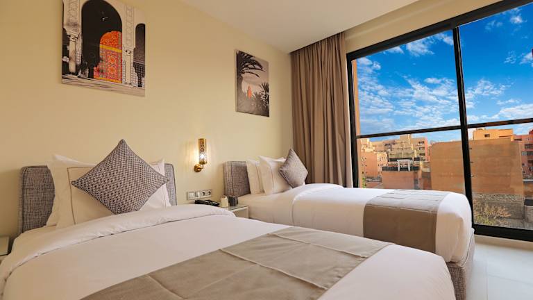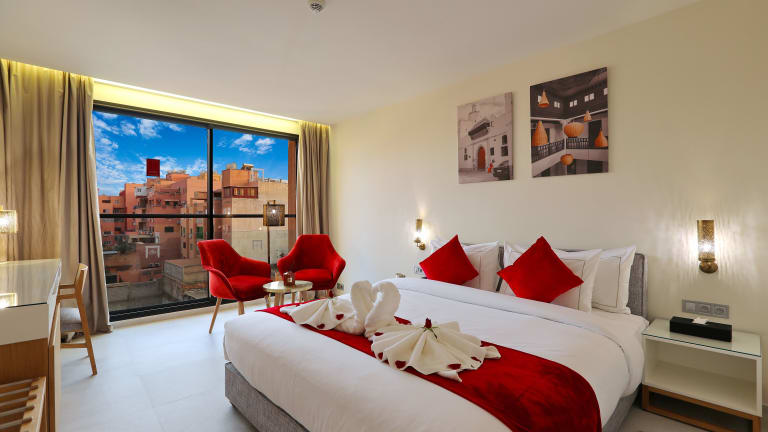 Das Hotel befindet sich im Bezirk Gueliz, 900 m vomBahnhof Marrakesch entfernt. Zu den nahegelegenen Sehenswürdigkeiten zählen der Jardin Majorelle in 2 km Entfernung sowie das Yves Saint Laurent Museum, das 1,8 km vom Hotel liegt. Der Marktplatz Djemaa el Fna ist 2,6 km entfernt, und der Flughafen Marrakesch Menara liegt 4 km entfernt.