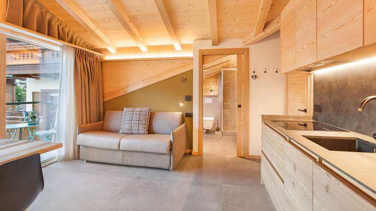 Die Ferienwohnung verfügt über 1 Schlafzimmer, ein Wohnzimmer mit TV, eine gut ausgestattete Küche mit Kühlschrank und Geschirrspüler sowie 1 Badezimmer mit Dusche. Handtücher und Bettwäsche werden bereitgestellt. Ein Balkon bietet einen Blick auf die Berge.
