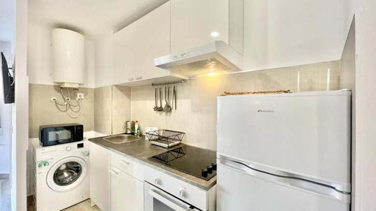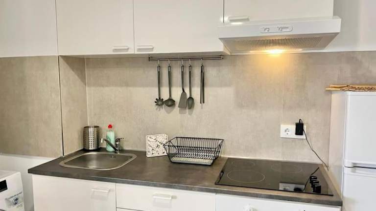 Die Ferienwohnung verfügt über ein Schlafzimmer, ein Wohnzimmer, eine voll ausgestattete Küche mit Kühlschrank und Kaffeemaschine sowie ein Badezimmer mit Dusche und kostenlosen Pflegeprodukten. Handtücher und Bettwäsche sind vorhanden. Die Unterkunft ist klimatisiert und bietet zusätzlich WLAN sowie einen Aufzug.