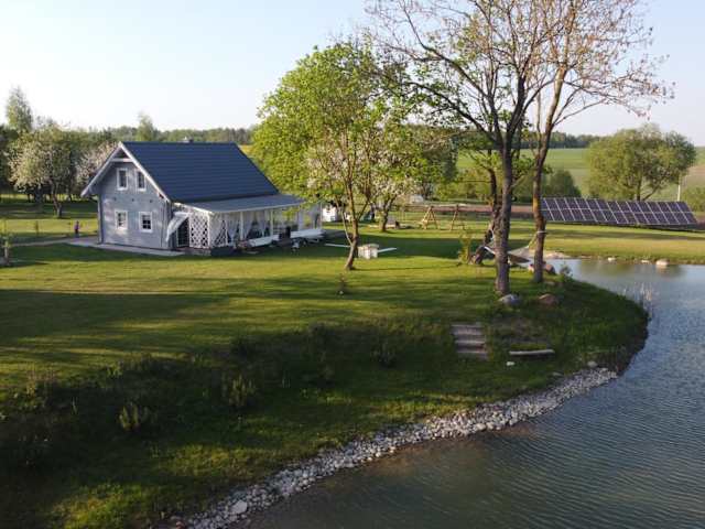 Das Ferienhaus im Arimaičių kaimo sodyba verfügt über 3 Schlafzimmer und eine gut ausgestattete Küchenzeile mit einem Kühlschrank und einem Geschirrspüler. Im Wohnbereich finden Sie einen Flachbild-TV und bequeme Sitzgelegenheiten. Das Badezimmer ist mit einer Dusche ausgestattet und Handtücher und Bettwäsche werden gestellt. Das Ferienhaus bietet auch einen Kinderspielplatz, der ideal ist, um die kleinen Gäste zu unterhalten.