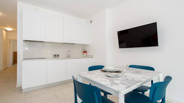 Ein italienisches Frühstück wird in der Unterkunft angeboten. Darüber hinaus sind die Apartments mit einer voll ausgestatteten Küchenzeile ausgestattet, die einen Kühlschrank, eine Herdplatte, eine Kaffeemaschine und einen Wasserkocher beinhaltet, sodass Selbstverpflegung möglich ist.