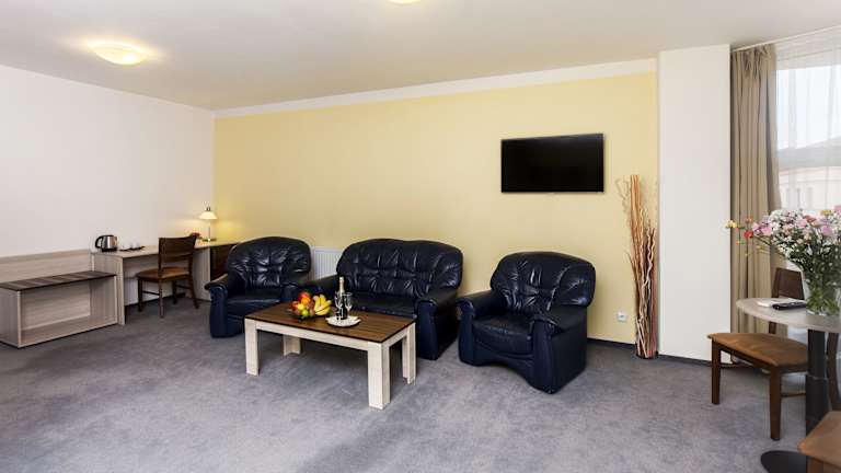 Die Zimmer im Arkada Hotel sind gemütlich eingerichtet und bieten Ihnen alles, was Sie für einen angenehmen Aufenthalt benötigen. Jedes Zimmer verfügt über Sat-TV und einen komfortablen Sitzbereich. Die Badezimmer sind mit Dusche oder Badewanne ausgestattet. Einige Zimmer bieten auch einen Flachbild-TV und einen herrlichen Blick auf die Stadt. WLAN nutzen Sie im gesamten Hotel kostenfrei.