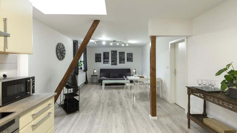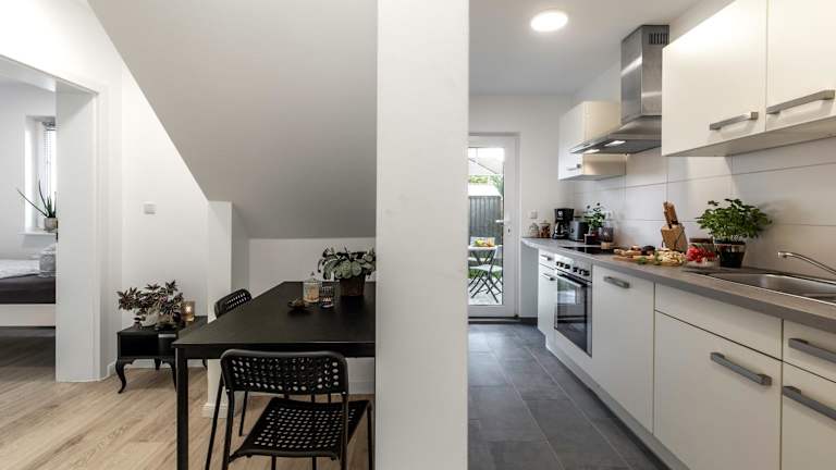 Die Apartments bieten komfortable Unterkünfte mit Parkettböden und einer voll ausgestatteten Küche, die einen Kühlschrank, einen Geschirrspüler, einen Backofen, eine Mikrowelle, eine Kaffeemaschine und einen Wasserkocher umfasst. Ein Essbereich und ein eigenes Badezimmer mit Dusche sind ebenfalls vorhanden. Zur weiteren Ausstattung gehören ein Flachbild-Sat-TV und kostenfreies WLAN.