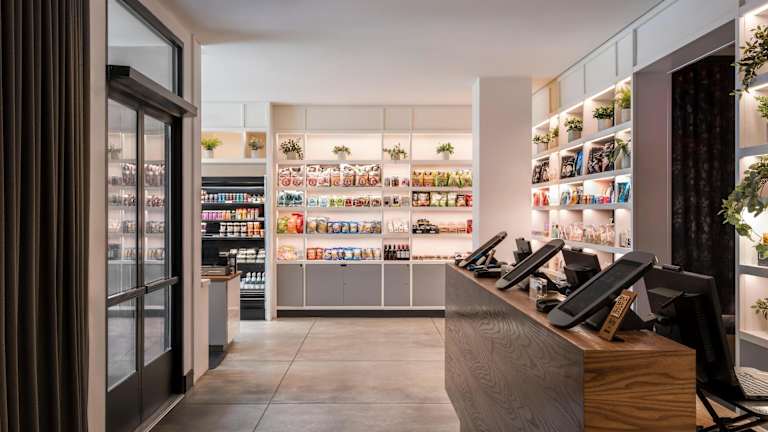Auf dem Gelände des Arlo SoHo Hotels finden Sie einen rund um die Uhr geöffneten Markt mit Lebensmitteln von Mouth NYC sowie einen Souvenirladen mit Souvenirs und mehr von Exit9.
