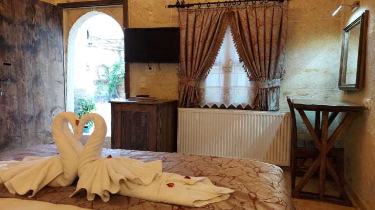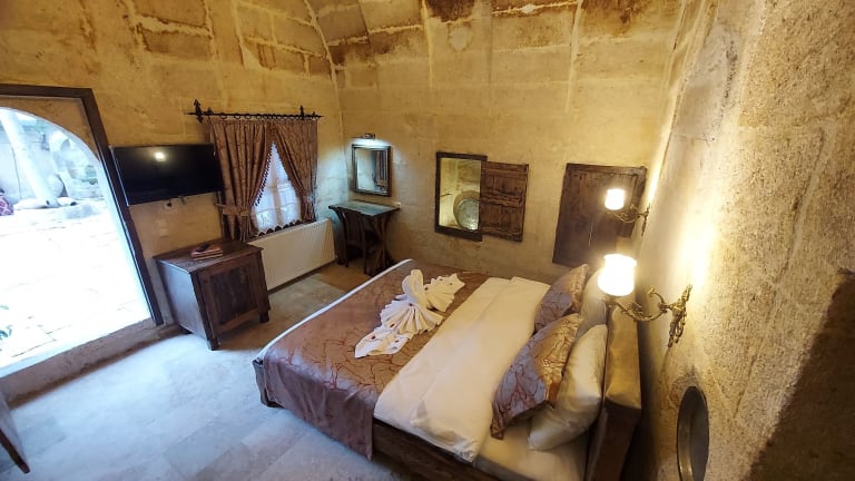 Das ARMEsos Cave Hotel in Ürgüp bietet Ihnen einen angenehmen Aufenthalt in einer ruhigen und malerischen Umgebung. Mit seinem schönen Garten, der gemütlichen Terrasse und der stilvollen Bar lädt das Hotel zum Entspannen ein. Das kostenfreie WLAN sorgt dafür, dass Sie immer mit der Außenwelt verbunden bleiben können. Das freundliche Personal steht Ihnen rund um die Uhr zur Verfügung und der Zimmerservice sorgt für zusätzlichen Komfort. Genießen Sie das asiatische Frühstück und erkunden Sie die umliegenden Sehenswürdigkeiten wie das Museum von Ürgüp und das Kloster Nikolos.