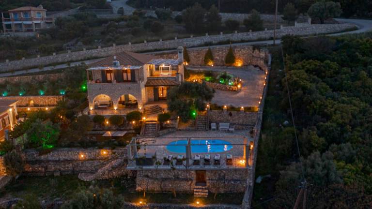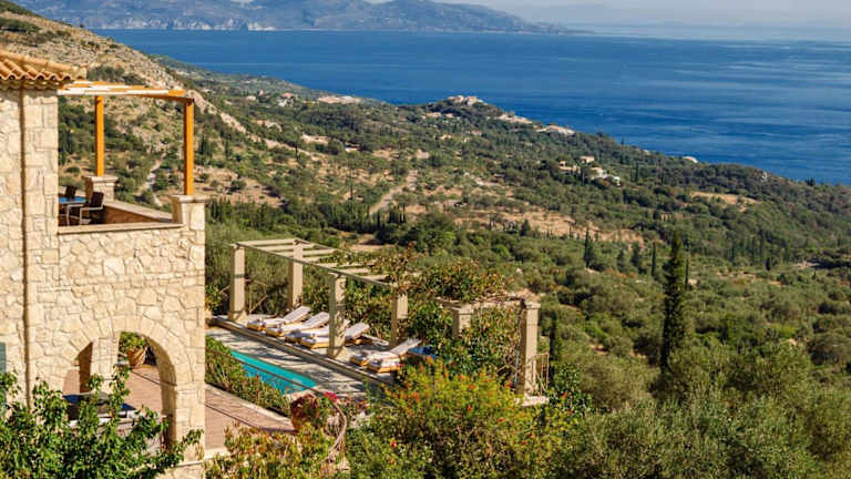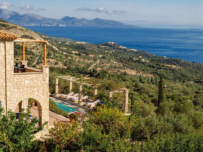 Die Villa befindet sich in Volímai auf Zakynthos, an einem Berghang mit Panoramablick auf das Ionische Meer. Die Umgebung bietet eine ruhige und naturnahe Lage, 7 km entfernt vom Steinpark Askos und dem berühmten Shipwreck Beach. Der Hafen von Agios Nikolaos ist 8 km entfernt, während der Hauptort und Hafen von Zakynthos 35 km in Anspruch nehmen.