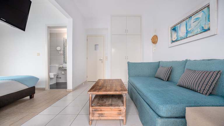 Die Zimmer im Hotel Arolithos sind elegant und komfortabel eingerichtet. Jedes Zimmer verfügt über orthopädische Matratzen, hochwertige Bettwäsche und natürliche Pflegeprodukte. Die Zimmer sind in beruhigenden Farbtönen gehalten und bieten einen Flachbild-TV. Ein Kühlschrank und eine Kaffeemaschine stehen Ihnen ebenfalls zur Verfügung. Genießen Sie den Blick auf das Meer oder den Garten von Ihrem eigenen Balkon aus.