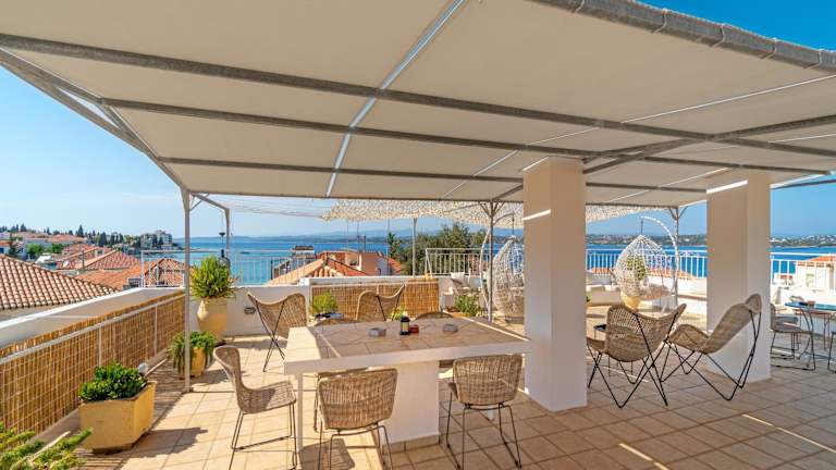 Das Hotel Arolithos auf Spetses ist eine ruhige Oase nur wenige Schritte vom Strand entfernt. Die eleganten Zimmer bieten kostenfreies WLAN, orthopädische Matratzen und hochwertige Bettwäsche. Genießen Sie den Blick auf das Meer oder den Garten von Ihrem eigenen Balkon aus. Die Strandpromenade mit ihren Restaurants und Cafés ist nur wenige Gehminuten entfernt. Der zentrale Hafen Dapia ist ebenfalls bequem zu Fuß erreichbar.
