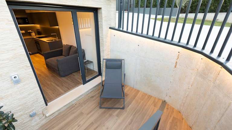 Die Unterkunft bietet einen saisonalen Außenpool, einen eigenen Strandbereich und eine Terrasse. Es sind keine weiteren Sport- oder Freizeitangebote angegeben.