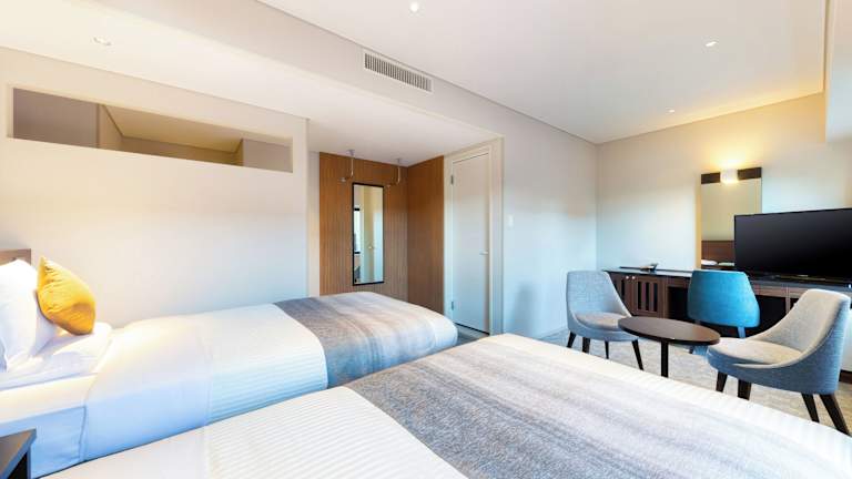 Die Zimmer sind modern eingerichtet und verfügen über Annehmlichkeiten wie Klimaanlage, Heizung, Kühlschrank, Wasserkocher sowie eine Hosenpresse. Zur Standardausstattung gehören auch ein Telefon, Sat-TV, Radio, Wecker und WLAN. In den Badezimmern finden sich Badewannen sowie kostenlose Pflegeprodukte. Das Hotel bietet sowohl Nichtraucher- als auch Raucherzimmer.
