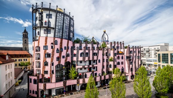 Übernachten Sie in der Grünen Zitadelle von Magdeburg, einem der letzten Projekte von Friedensreich Hundertwasser. Jedes Zimmer verfügt über ein persönlich von Hundertwasser geplantes Badezimmer mit bunten Fliesen - und einer ganz individuellen Ausstattung.